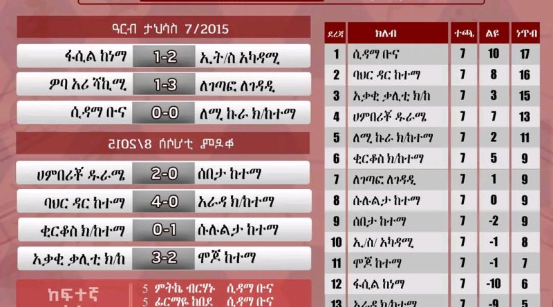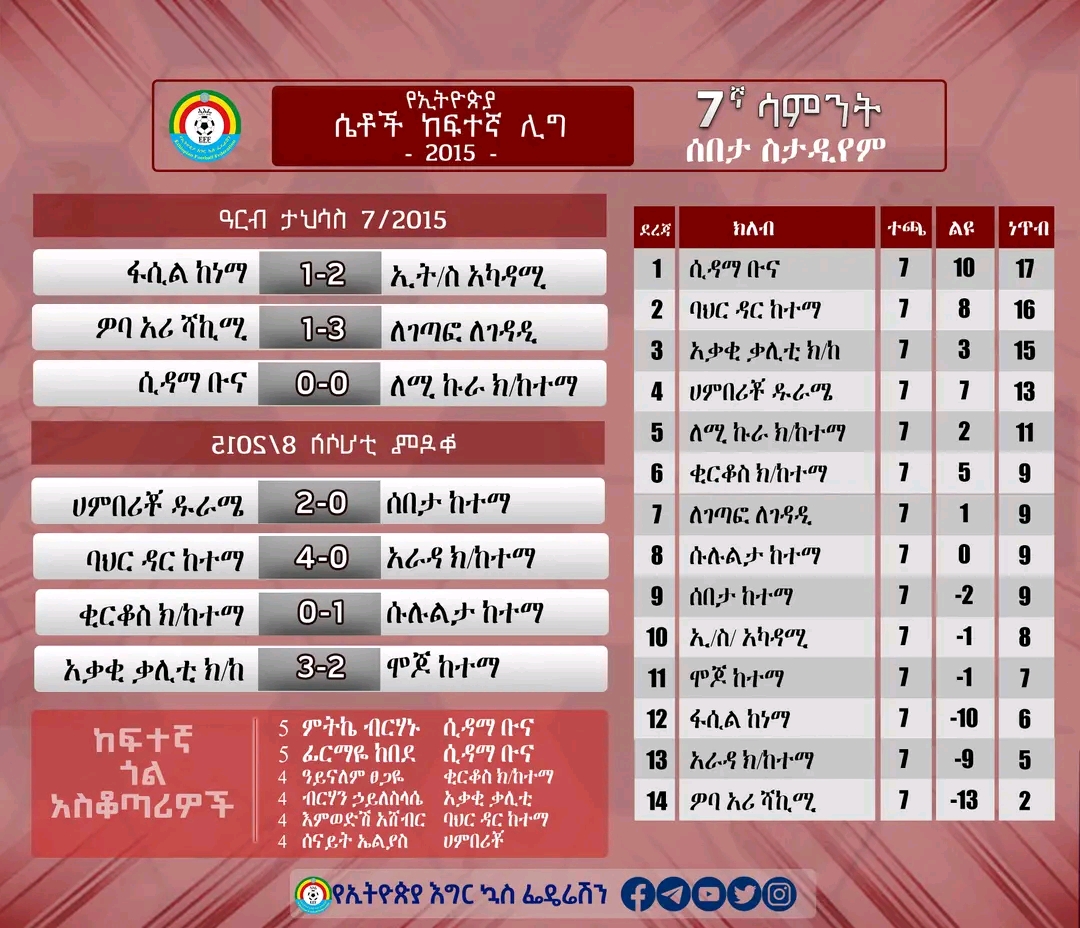 የኢትዮጵያ ሴቶች ከፍተኛ ሊግ 7ኛ ሳምንት ሁለተኛ ቀን ውጤቶች