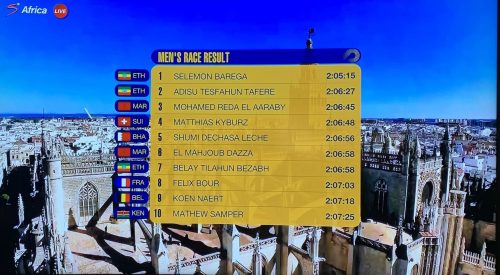 ከትላንትና በስቲያ በስፔን ሲቪያ በተካሄደው ” Zurich maratón de Sevilla” እየተባለ በሚጠራው አመታዊ የማራቶን ውድድር ላይ አትሌት ሰለሞን ባረጋ ባለድል መሆኑ ይታወቃል። ሰለሞን ማራቶንን ሲሮጥ ለመጀመሪያው ጊዜ ሲሆን የመጀመሪያ የማራቶንን ውድድሩን በድል ብቻ ሳይሆን ጥሩ ሰአት በማስመዝገብም ጭምር ነው። ሰለሞን ማራቶኑን የጨረሰበት ሰአት 2:05:15 ሲሆን እስከ 37ተኛው ኪሎ ሜትር ድረስ ግን በ2:03:30 ውድድሩን እንደሚጨርስ ተተንብዮ ነበር፤ ሆኖም የነበረበትን ፍጥነት ማስቀጠል ባለመቻሉ 2:05:15 በሆነ ሰአት ውድድሩን አጠናቋል። ሰለሞን የመጀመሪያውን ግማሽ ማራቶን የሮጠበት የ61:44 ሰአት ማራቶኑን ከ2:03 በታች ለመግባትም እንዲጠበቅ አድርጎት ነበር። በታሪክ ይህንን ማድረግ የቻሉት 12 አትሌቶች ብቻ ሲሆኑ ሰለሞን ያንን የታሪክ ሰሪዎች ቡድን በመጀመሪያ ማራቶኑ የመቀላቀል እድል ነበረው፤ ነገር ግን ሁለተኛውን ግማሽ ማራቶን ለመጨረስ የፈጀበት 63:31 ሰአት ያ እንዳይሆን አድርጎታል።